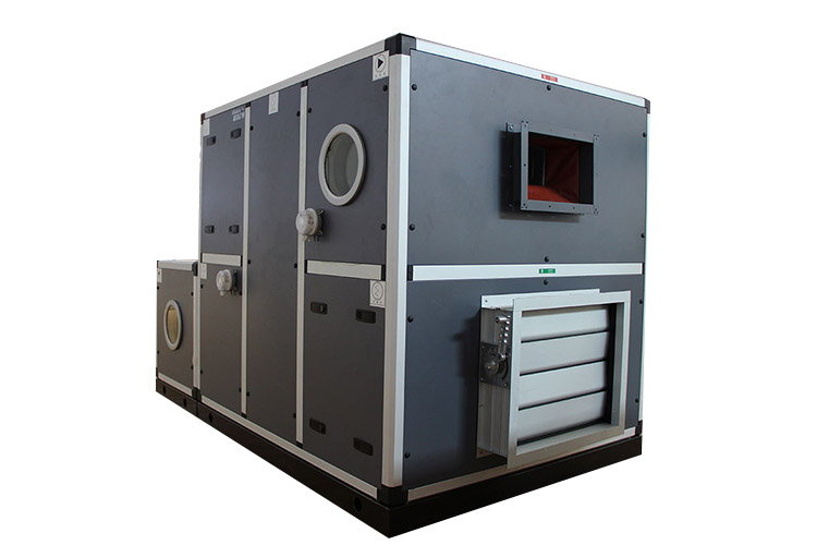用(yòng)於調節室內空氣溫濕度和潔淨(jìng)度的設備。有滿足熱濕處理(lǐ)要求(qiú)用的空氣加熱器、空氣冷卻器、空氣加濕器,淨(jìng)化空氣用的空氣過濾器,調(diào)節新風、回風(fēng)用的混風箱以及降低通風機(jī)噪聲用的消聲器。空氣處理機組均設有通風機。根據全年空氣調節的要求,機組(zǔ)可配置與冷熱源相連接的自動調節係(xì)統。